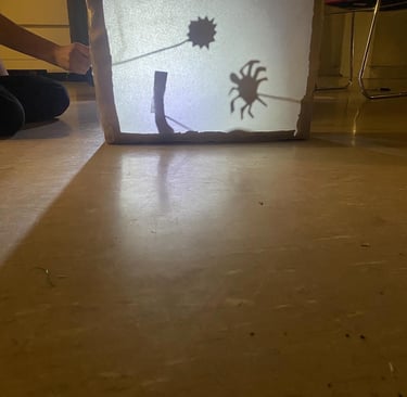 This term we are looking at storytelling using shadow puppet theatre.